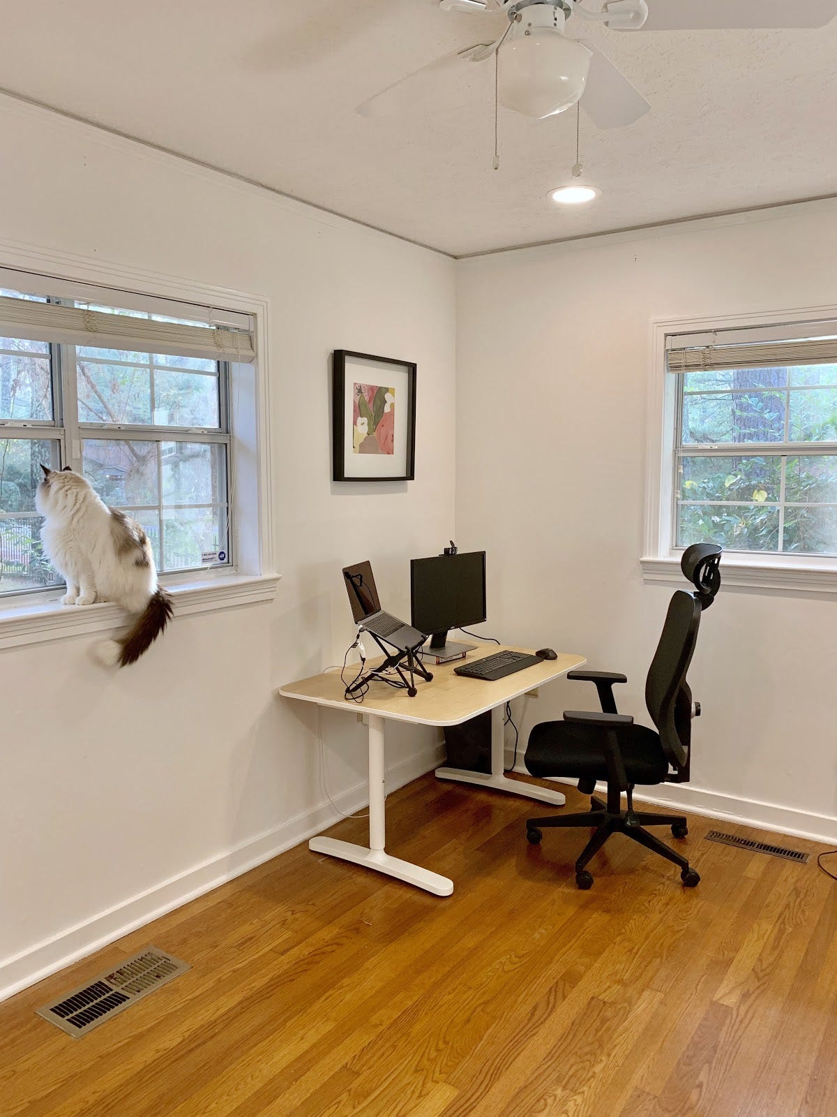 Office set-up — We send all new employees a home office set-up. If you are working remotely temporarily, it might not make sense to do this for all employees. We would, however, recommend having new employees try to carve out a place that is conducive to working: not on a bed, not on a couch, and not at the kitchen table. If possible, consider sending chairs and desks from the office home to employees.