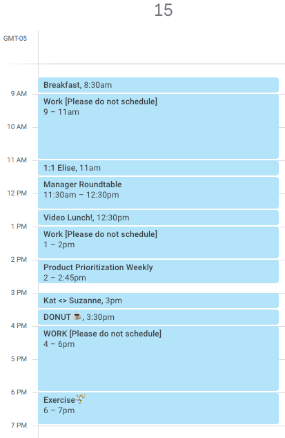 - “Heads down work” — block off time for fully focused work with no interruptions. Following norms are integral to making this work.